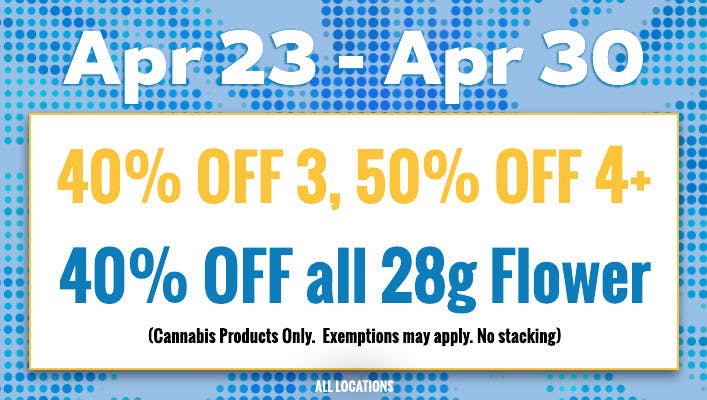 Cannot be combined with other offers, points, or promotions. Exclusions apply. Ask budtender for details.